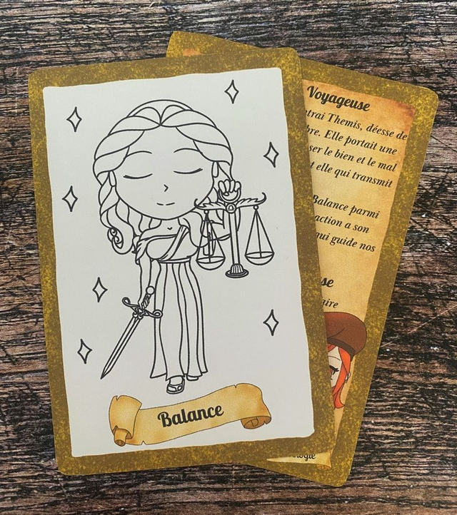 Véritable "fragment de voyage" sur le thème Astrologique, la carte présente un visuel original prêt à être colorié sur le recto. Le verso présente une histoire racontée par la Voyageuse, accompagné d'un défi ou d'un jeu créatif.